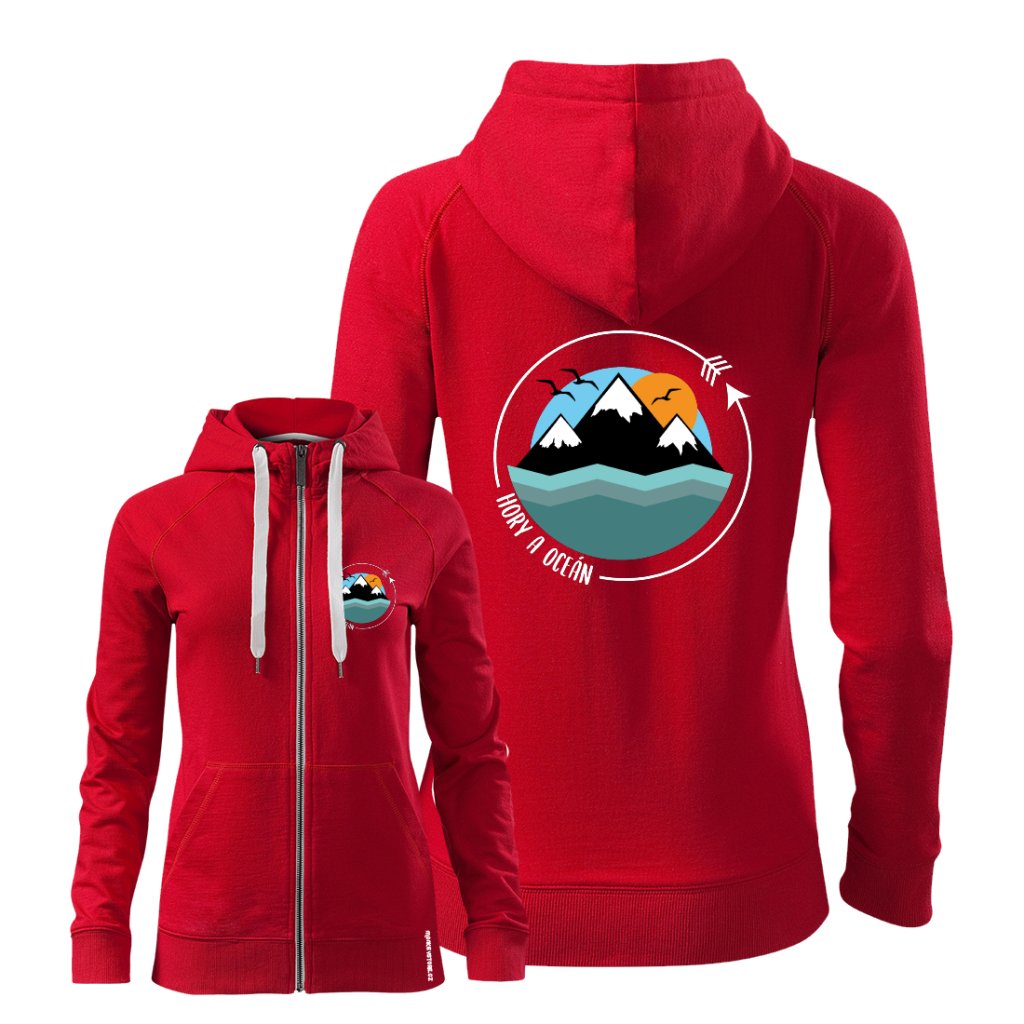Mikina Exclusive Hory a oceán na zip dámská - Velikost: XXL Barva: Červená