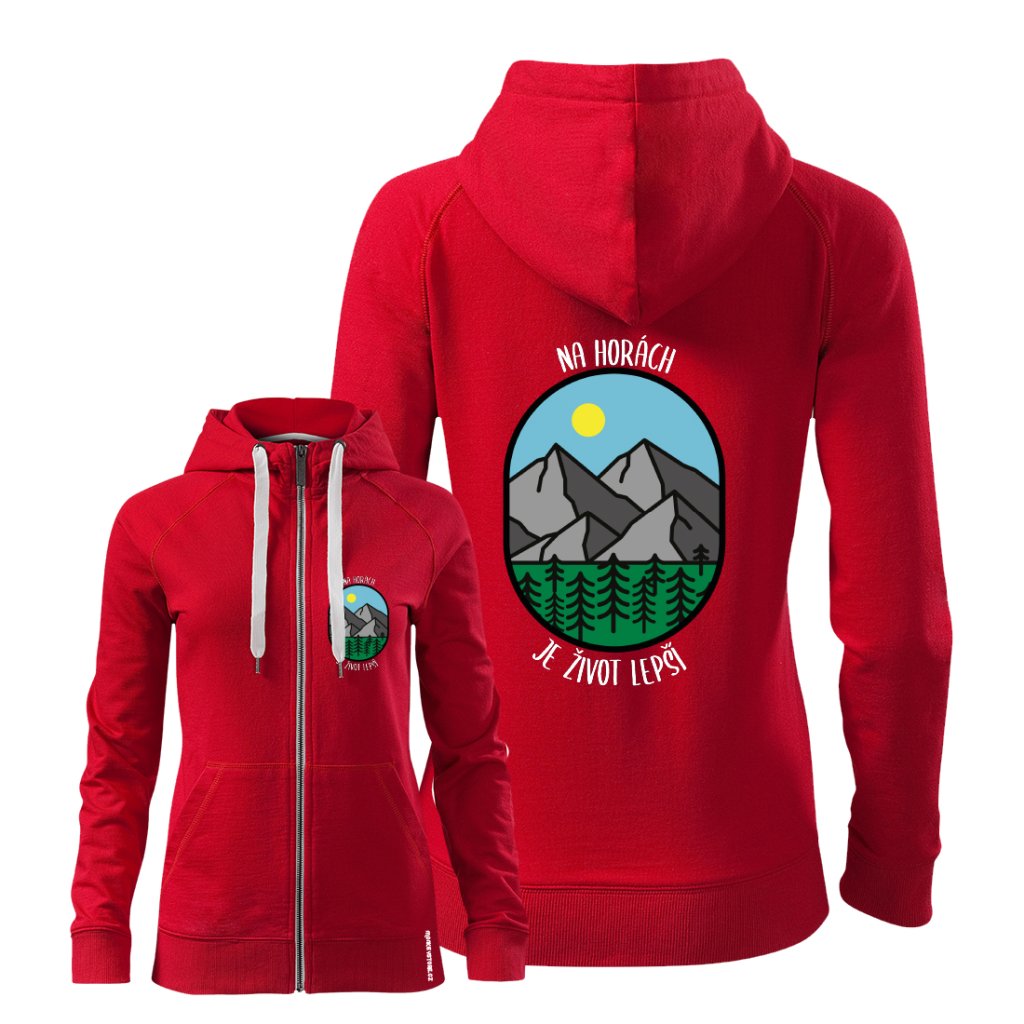 Mikina Exclusive Na horách na zip dámská - Velikost: L Barva: Červená